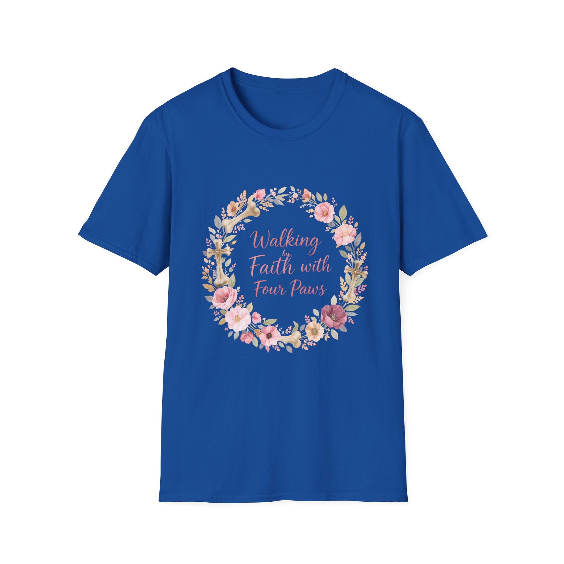 Walking By Faith With Four Paws Floral Wreath T-Shirt